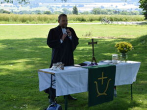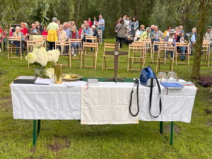 Es sprachen Pfarrer Tim Wendorff, als Hausherr. Sabine Diedrich, als Initiatorin und Wiebke de Jong Posthumus vom Freistil-Kunst-Team.