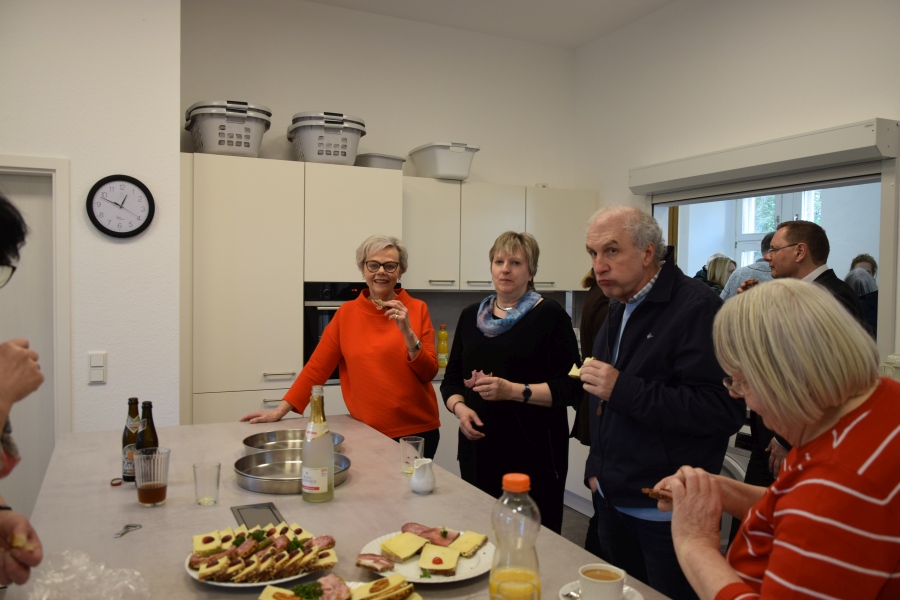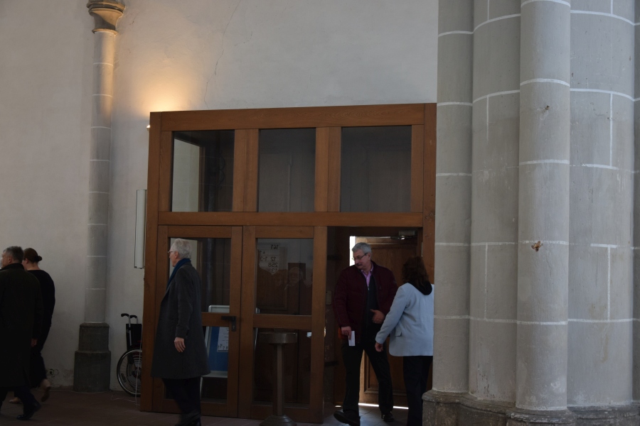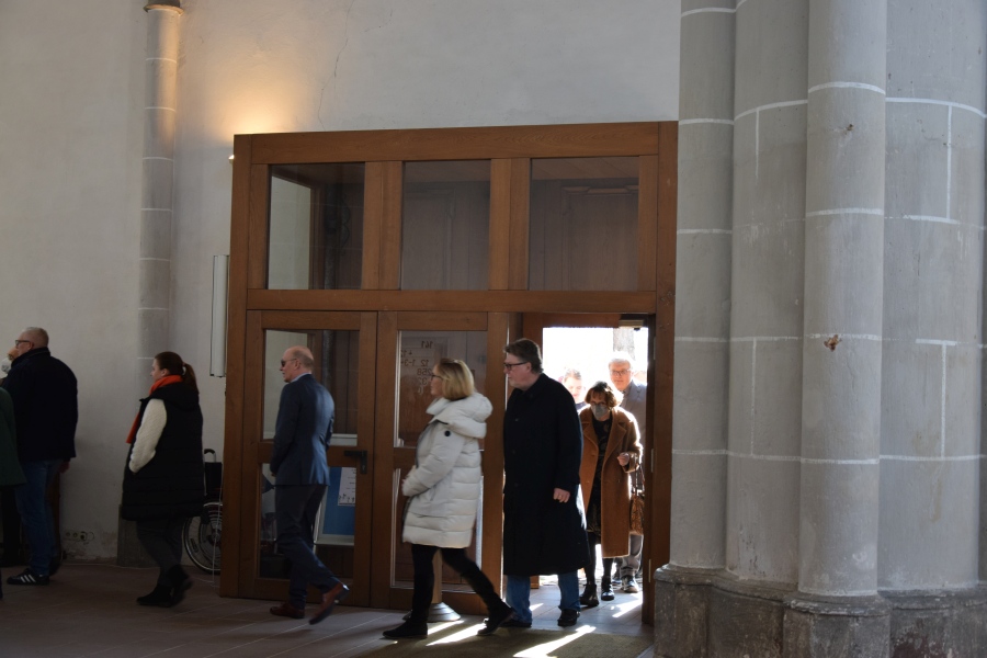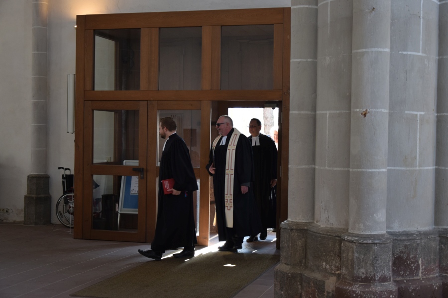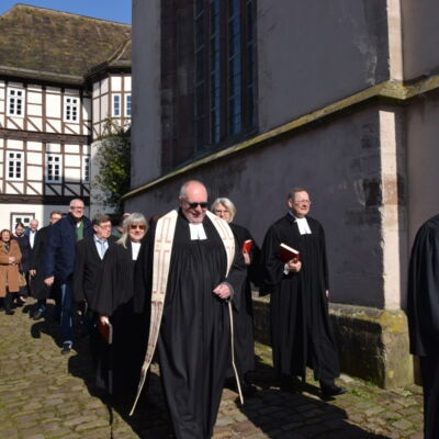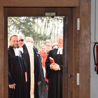 Rechts im Bild die ausscheidenden und neu berufenen Presbyterinnen und Presbyter mit dem Pfarrteam vor dem Gottesdienst. Von links: Gisela Proß, Anne von Oiste-Neumann, Pfr'in Astrid Neumann, Pfr. Uwe Neumann, Valeria Kayser, Dr. Walter Werbeck, Sandra Dierkes, Tobias Korte, Annette von Wolff-Metternich, Reinhard Großkopf, Jochen Siebrecht, Detlev Kern, Petra Paulokat-Helling, Pfr. Tim Wendorff, Holger Kreiter, Pfr. Gunnar Wirth, Walter Jurak, Pfr'in Friedhilde Lichtenborg, Dietmar Kanand.