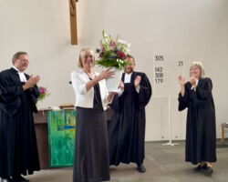Die Nachfolgerin von Karin, Jutta Leiße, wurde anschließend in ihr neues Amt eingeführt. Neben ihrer Stelle als Gemeindesekretärin wird Jutta der Gemeinde weiterhin als Prädikantin erhalten bleiben. Auch für diesen neuen Anfang wünschen wir alles Gute, liebe Jutta.