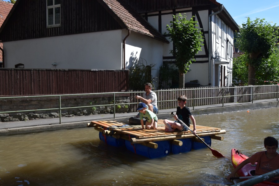 Und von dieser Pritsche startet wieder ein Kanu mit Schwung der Wasserfläche zu. Sie könnten es auch versuchen – doch ich höre schon Ihre Ausrede: Die gute Sonntagskleidung … sollen doch die Kinder … Es ist schon kurz vor zwei, die Glocken läuten bereits ... erst mal Gottesdienst.