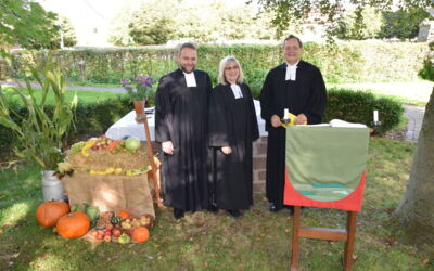 Der Altar war liebevoll mit Obst, Gemüse und Blumen geschmückt. Pfarrerin Astrid Neumann, Pfarrer Gunnar Wirth und Pfarrer Tim Wendorff leiteten den Gottesdienst. Musikalisch begleitet wurde der Gottesdienst vom Posaunenchor Bruchhausen. Erntedank ist aber auch ein Anlass, um über unsere Verantwortung für die Umwelt und die Mitgeschöpfe nachzudenken. Wir können uns fragen, wie wir mit den Ressourcen der Erde umgehen, wie wir unseren Konsum gestalten und wie wir zu einer gerechteren Welt beitragen können. Erntedank ist eine Einladung, dankbar zu sein für das Leben und die Liebe, die uns von Gott geschenkt sind. Im Anschluss an den Gottesdienst wurde noch in gemütlicher Runde beisammen gesessen. Es gab Getränke, Kürbissuppe mit Brot, verschiedenen Dips und Würstchen vom Grill. Kaffee und Kuchenliebhaber kamen auch nicht zu kurz.