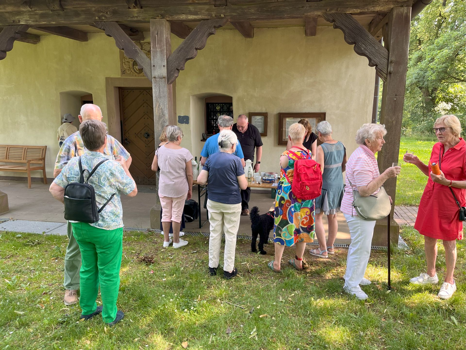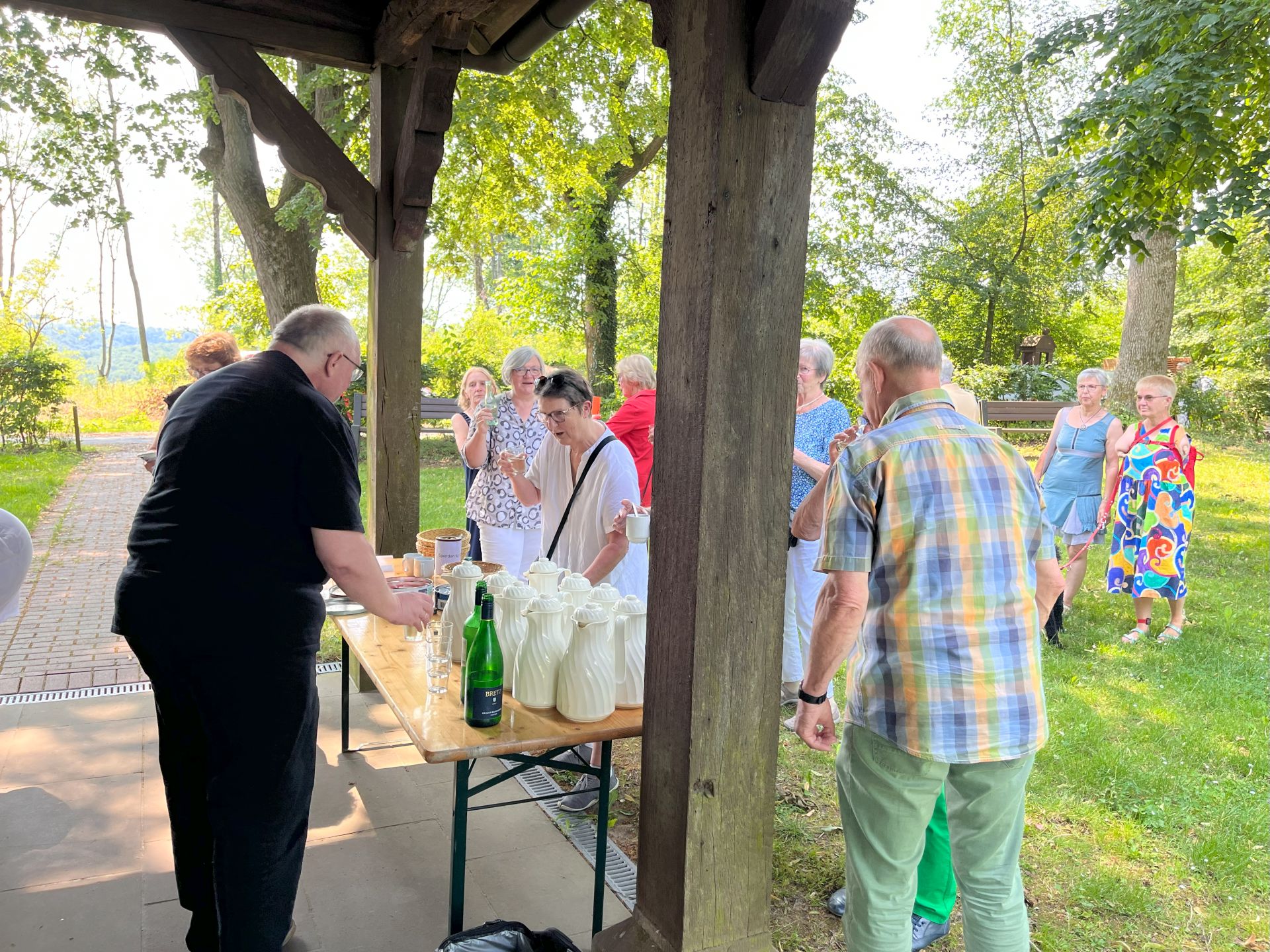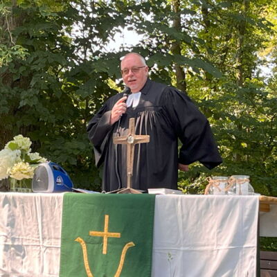 Wer sind die Apostel, wer ist Jesus als Mensch, wer sind wir? Mit diesen Fragen weckte Pfarrer Neumann die Aufmerksamkeit der Zuhörer. Mit verschiedenen Antworten regte er die Menschen zum Nachdenken an und half ihnen, die Botschaft des Predigttextes zu verstehen. Nach dem Gottesdienst lud Pfarrer Uwe Neumann alle Besucher zu Wasser und einem Glas Wein ein. Danke an alle Helfer, die mitgeholfen haben, diesen schönen Gottesdienst zu feiern. Ohne euch Helfer wäre das nicht möglich. Danke!