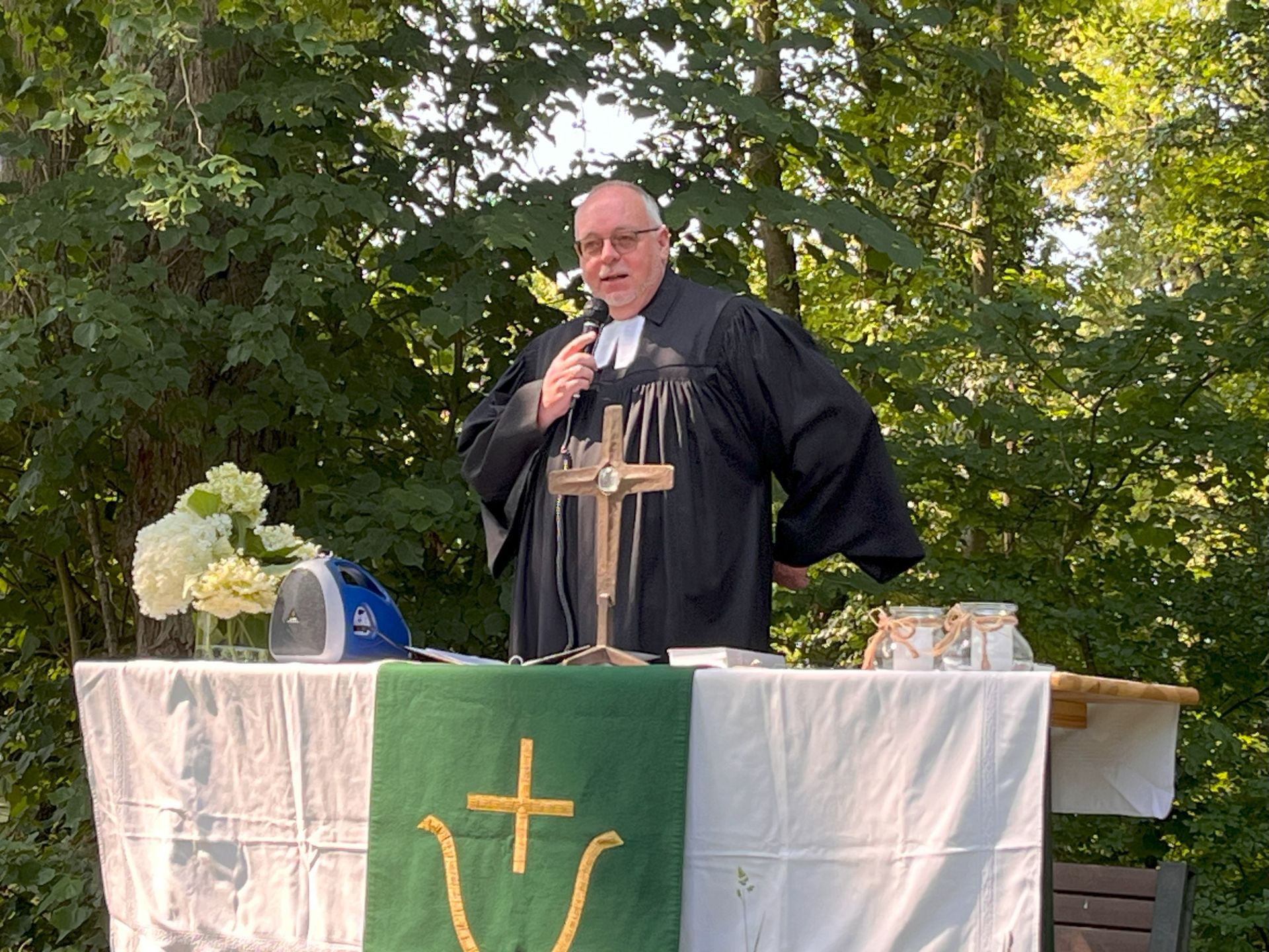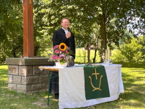 Es sprachen Pfarrer Tim Wendorff, als Hausherr. Sabine Diedrich, als Initiatorin und Wiebke de Jong Posthumus vom Freistil-Kunst-Team.