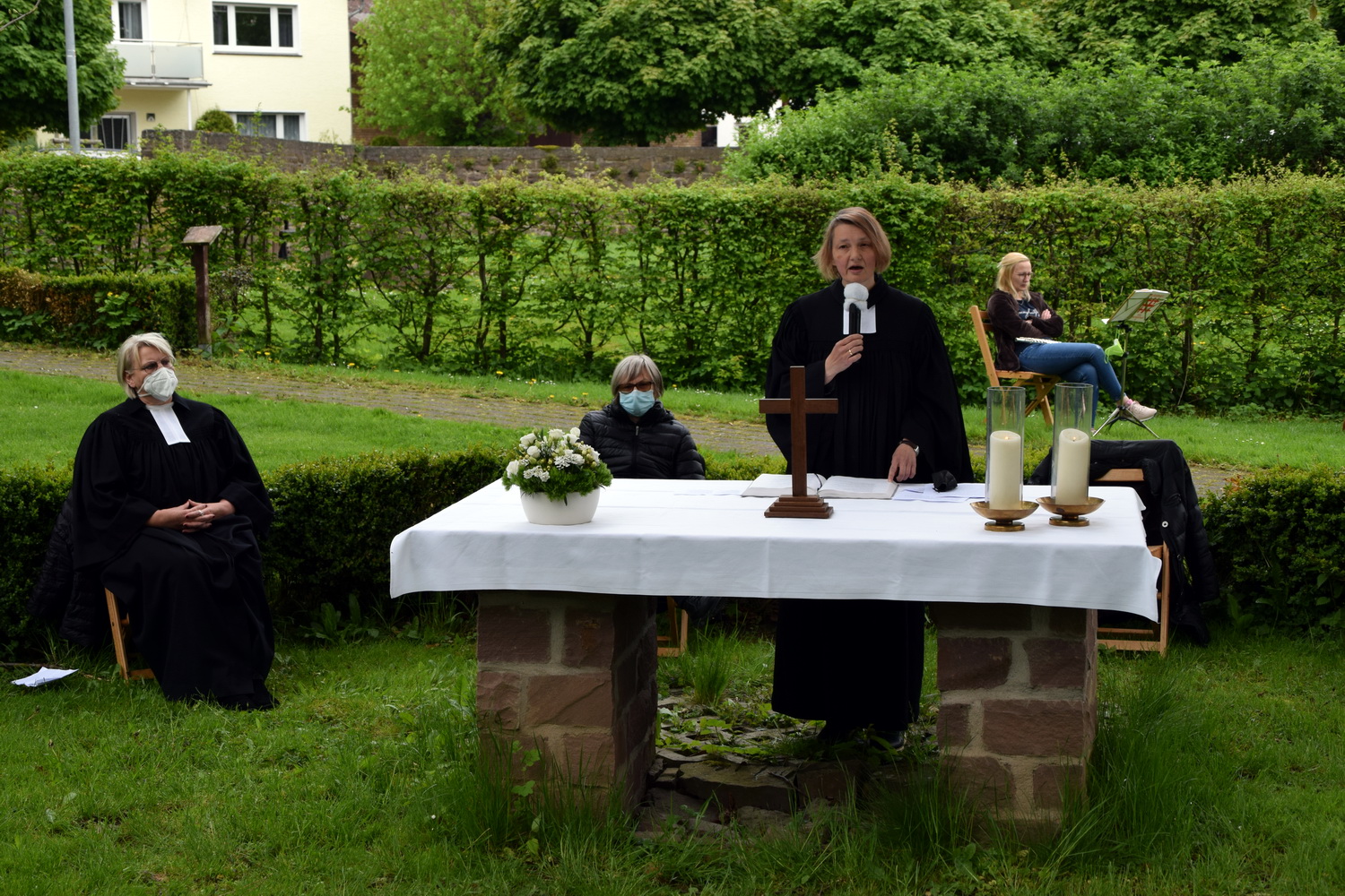 Die evangelische-Weser-Nethe-Kirchengemeinde feierte am Donnerstag, den 13.05.2021 ihren Christi Himmelfahrt Gottesdienst in Amelunxen unter Wolken verhangenem Himmel. Fleißige Hände schmückten den Altar und sorgten für Sitzplätze im Lebensgarten.