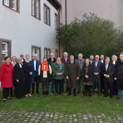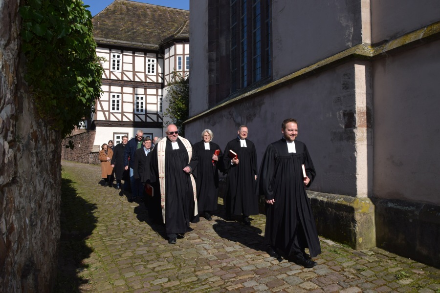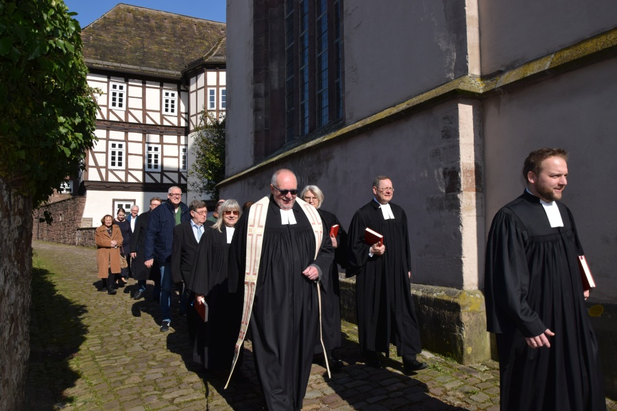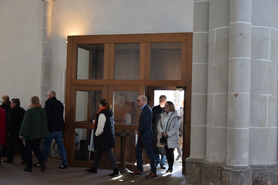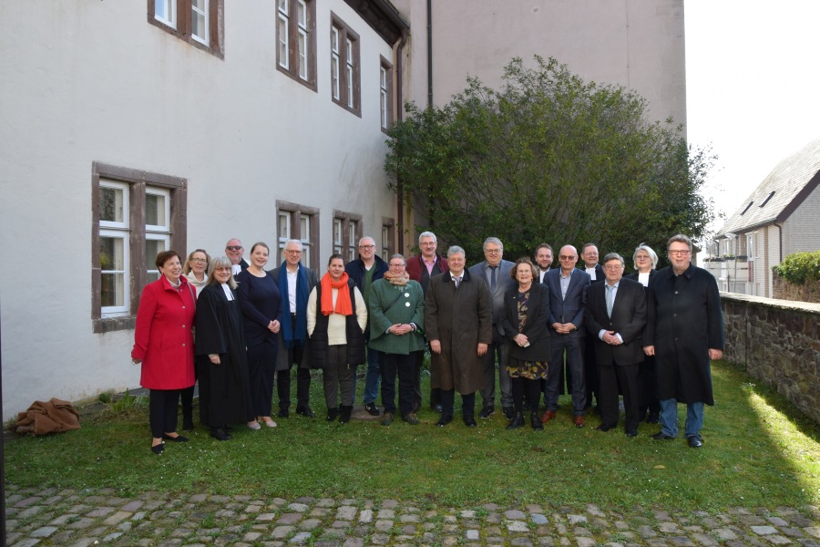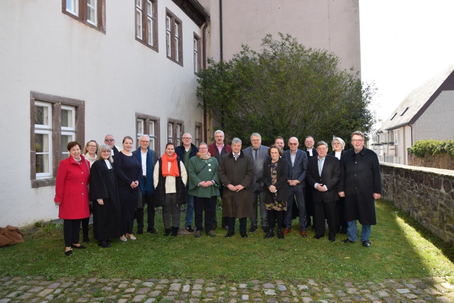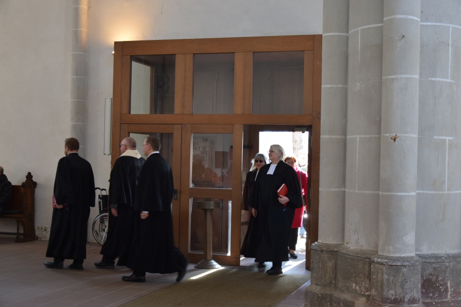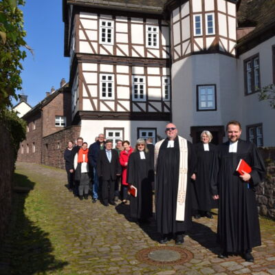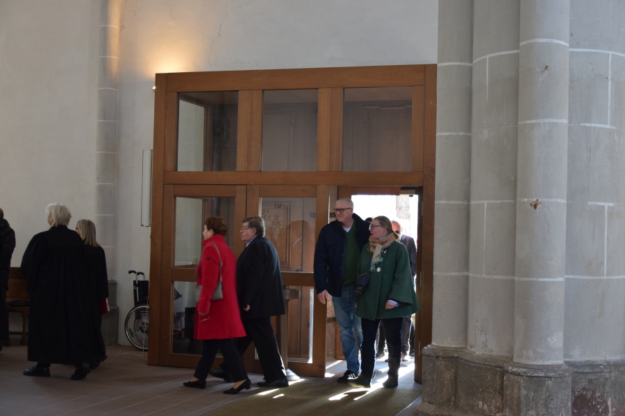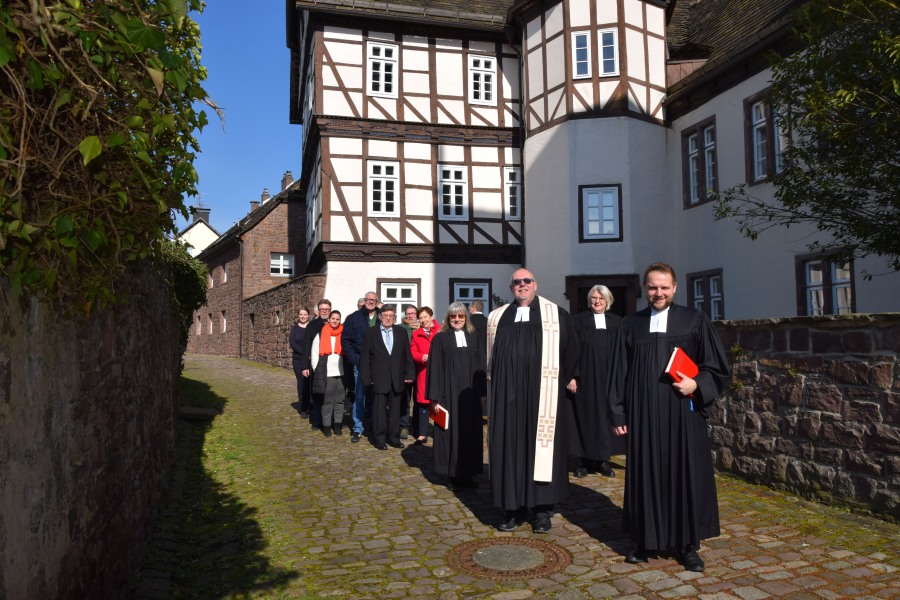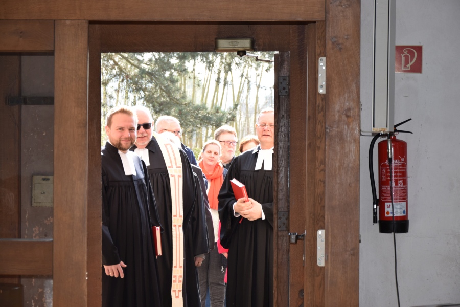 Rechts im Bild die ausscheidenden und neu berufenen Presbyterinnen und Presbyter mit dem Pfarrteam vor dem Gottesdienst. Von links: Gisela Proß, Anne von Oiste-Neumann, Pfr'in Astrid Neumann, Pfr. Uwe Neumann, Valeria Kayser, Dr. Walter Werbeck, Sandra Dierkes, Tobias Korte, Annette von Wolff-Metternich, Reinhard Großkopf, Jochen Siebrecht, Detlev Kern, Petra Paulokat-Helling, Pfr. Tim Wendorff, Holger Kreiter, Pfr. Gunnar Wirth, Walter Jurak, Pfr'in Friedhilde Lichtenborg, Dietmar Kanand.