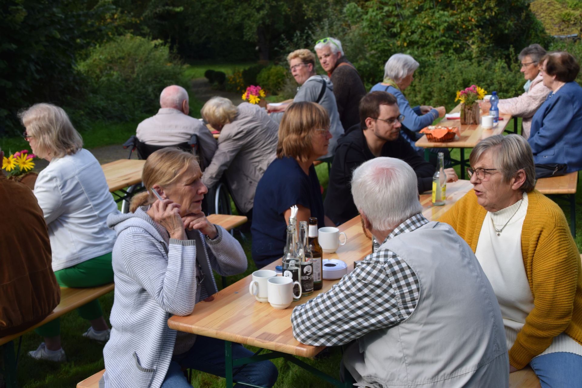 Der Altar war liebevoll mit Obst, Gemüse und Blumen geschmückt. Pfarrerin Astrid Neumann, Pfarrer Gunnar Wirth und Pfarrer Tim Wendorff leiteten den Gottesdienst. Musikalisch begleitet wurde der Gottesdienst vom Posaunenchor Bruchhausen. Erntedank ist aber auch ein Anlass, um über unsere Verantwortung für die Umwelt und die Mitgeschöpfe nachzudenken. Wir können uns fragen, wie wir mit den Ressourcen der Erde umgehen, wie wir unseren Konsum gestalten und wie wir zu einer gerechteren Welt beitragen können. Erntedank ist eine Einladung, dankbar zu sein für das Leben und die Liebe, die uns von Gott geschenkt sind. Im Anschluss an den Gottesdienst wurde noch in gemütlicher Runde beisammen gesessen. Es gab Getränke, Kürbissuppe mit Brot, verschiedenen Dips und Würstchen vom Grill. Kaffee und Kuchenliebhaber kamen auch nicht zu kurz.
