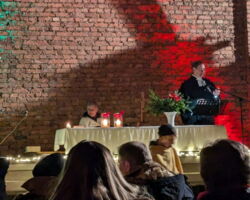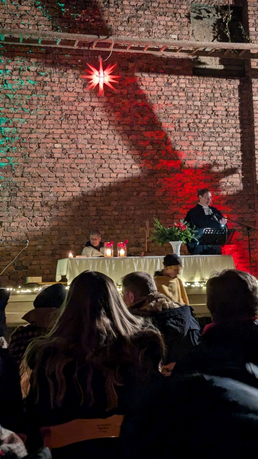 Pfarrer Wirth erläuterte in seiner Ansprache die Hintergründe des Friedenslichts aus Bethlehem. In diesem Jahr konnte es aufgrund der Situation im Nahen Osten nicht wie geplant direkt aus Bethlehem geholt werden. Stattdessen wurde es aus einer Kapelle in Österreich, in der das Licht das ganze Jahr über brennt, in ganz Europa verteilt.