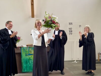 Die Nachfolgerin von Karin, Jutta Leiße, wurde anschließend in ihr neues Amt eingeführt. Neben ihrer Stelle als Gemeindesekretärin wird Jutta der Gemeinde weiterhin als Prädikantin erhalten bleiben. Auch für diesen neuen Anfang wünschen wir alles Gute, liebe Jutta.