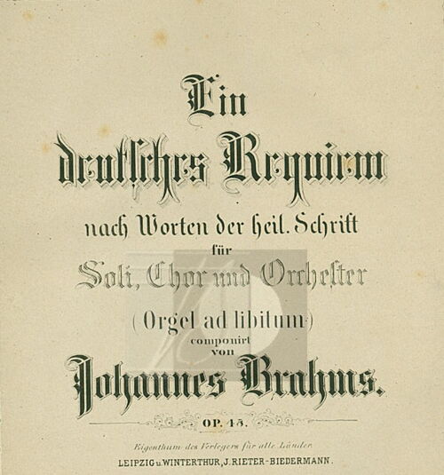 „Ein deutsches Requiem“ ist nicht nur die längste und mit Orchester, Chor und zwei Solisten besonders umfangreich besetzte Komposition von Johannes Brahms, das Werk erfreut sich auch seit seiner Uraufführung 1886 bzw. 1869 bis heute großer Beliebtheit. Exzeptionell ist schon der Text: eine freie Mischung von deutschen Bibelsprüchen aus dem Alten wie Neuen Testament sowie den Apokryphen, konzentriert auf Inhalte wie Trauer, Leid, Trost, Tod und Ewigkeit. Diese Themen verbinden Brahms` Werk mit der katholischen Totenmesse, von der der Titel „Requiem“ entlehnt ist.