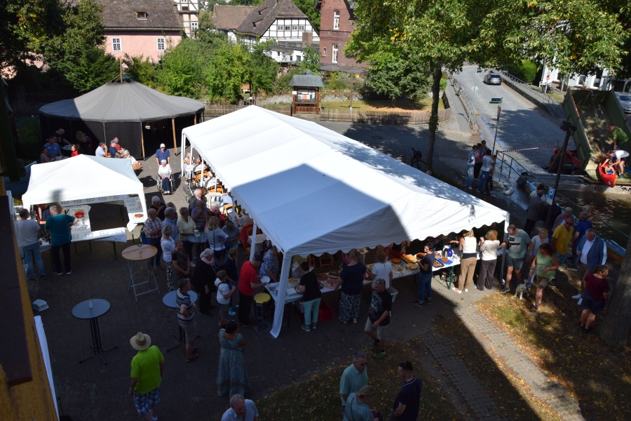 Dann erklingt der Posaunenchor Bruchhausen und Pfarrdechant Dr. Krismanek eröffnet den ökumenischen Gottesdienst. Pfarrer Gunnar Wirth hält die Ansprache über Eph 3, 17b – 19a: „Und ihr seid in der Liebe eingewurzelt und gegründet, damit ihr mit allen Heiligen begreifen könnt, welches die Breite und die Länge und die Höhe und die Tiefe ist, auch die Liebe Christi erkennen könnt, die alle Erkenntnis übertrifft.“ Er spricht von „neuen Dimensionen“ und davon, dass wir „die Liebe Christi erhaschen“ können, denn „sie ist wirklich da“. „Und heute, wenn wir miteinander feiern und essen und trinken und erzählen und zuhören und lachen und nachdenken, da mag davon auch etwas ans Tageslicht kommen. Wie der verrohrte Silberbach.“