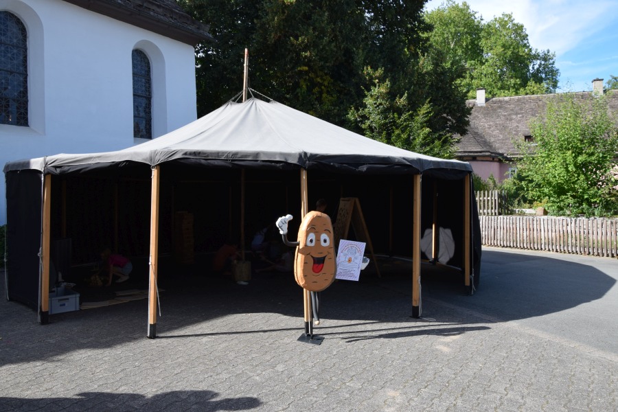 Ich muss Sie jetzt allein lassen, der Posaunenchor wartet schon auf mich. Ein Hinweis noch, wenn Sie nachher wieder aus der Kirche herauskommen, schauen Sie doch auch noch mal in die Jurte – das schwarze Zelt auf dem Kirchplatz - da werden noch Spiele für die kleineren Kinder angeboten. Ach ja, um 16:00h spielt der Posaunenchor auch nochmal auf dem Kirchplatz. Stören Sie sich nicht daran, dass die Kinder nachher alle nass sind. Das ist hier immer so. Erst sind sie noch etwas vorsichtig, aber spätestens um halb vier sind alle Hemmungen dahin.