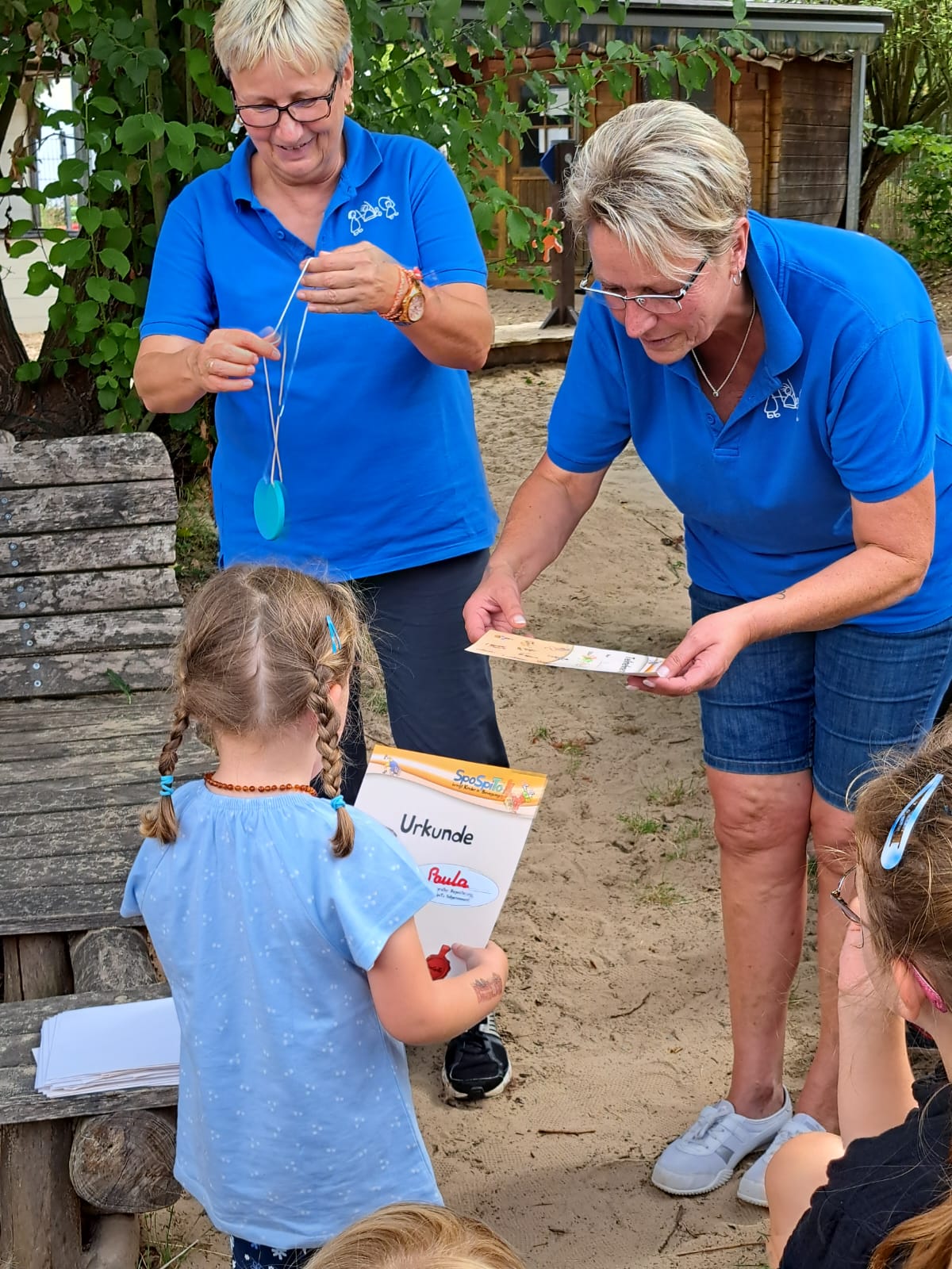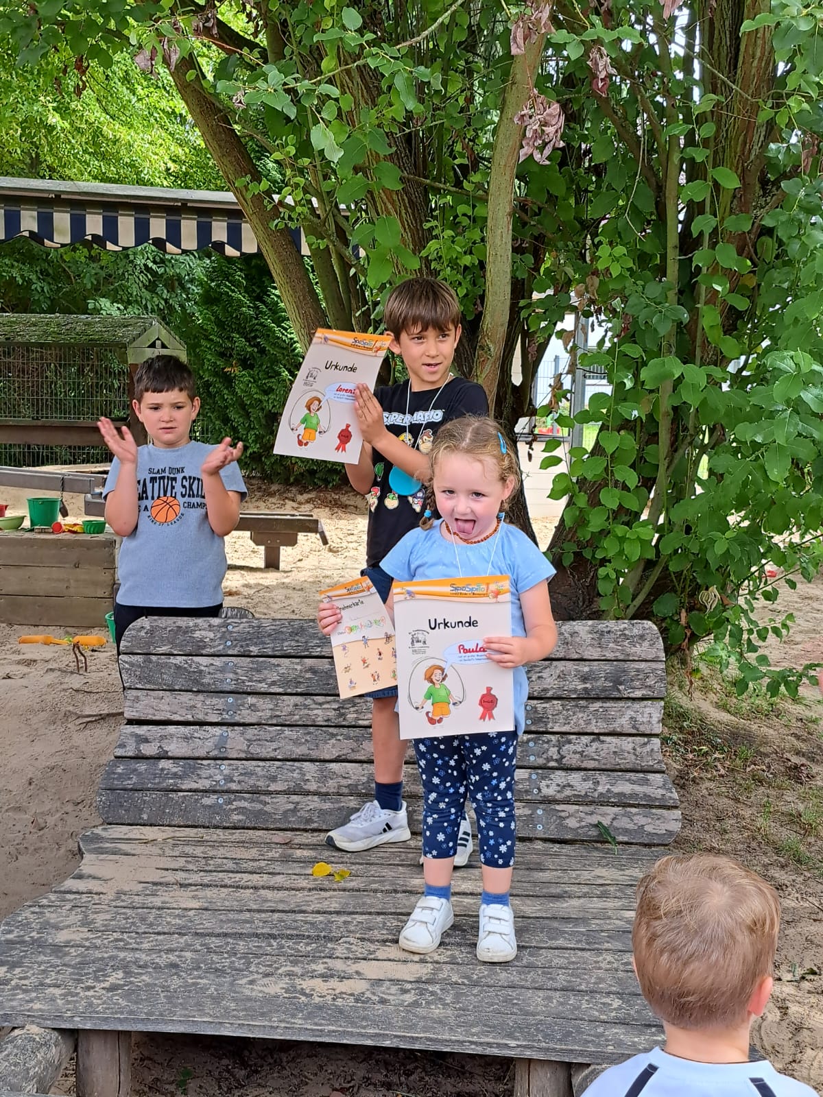 Wer seinen Sportpass abgeholt hatte, konnte dann mit den 10 verschiedenen Stationen rund um die Kindertagesstätte starten. Es wurde gehüpft, geklettert und vieles mehr. Wer alle 10 Stationen geschafft hatte, wurde im Anschluss bei der Siegerehrung mit einer Urkunde und Medaille belohnt.