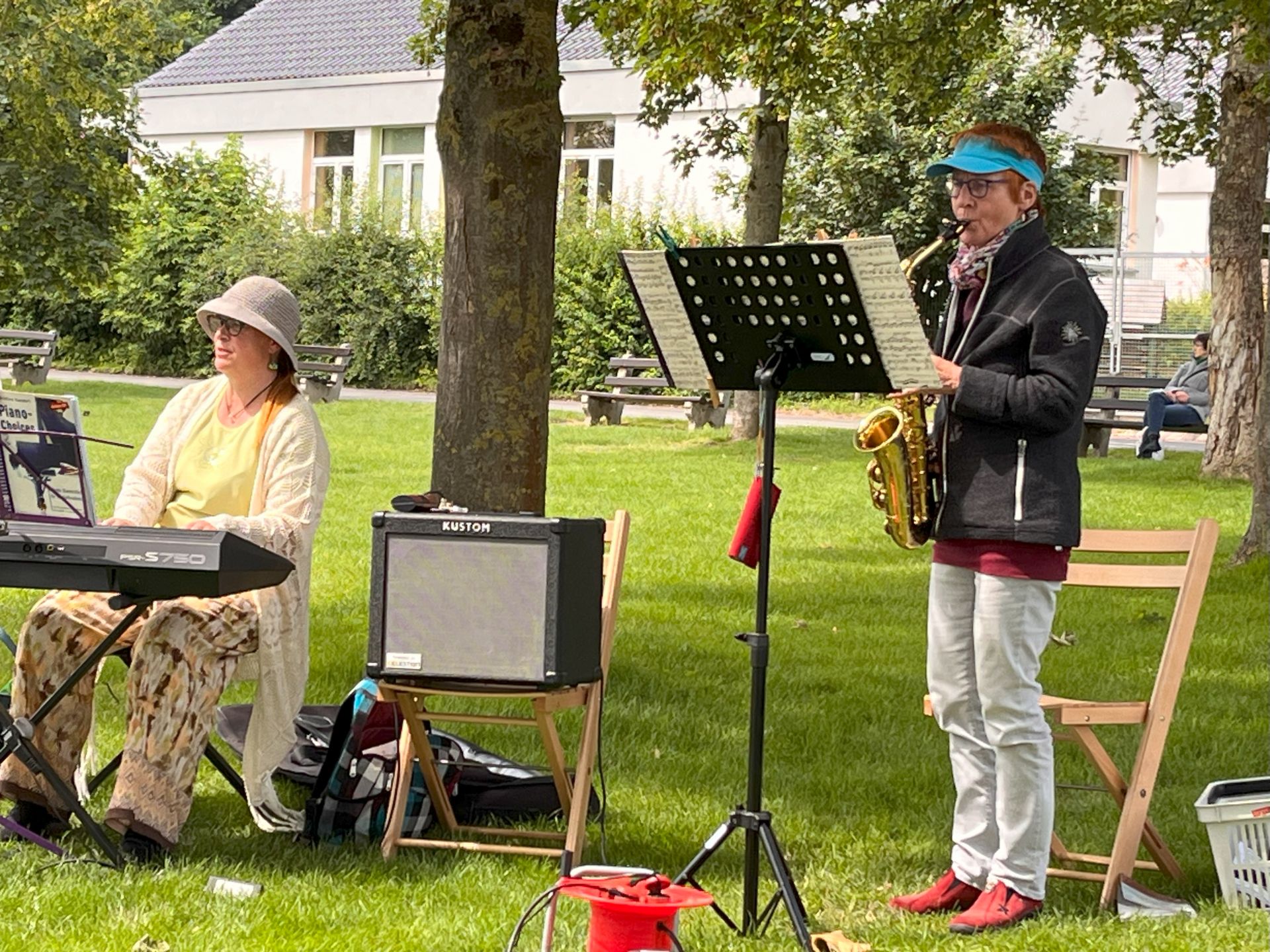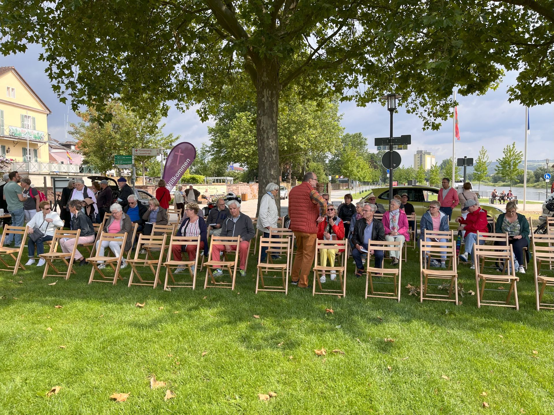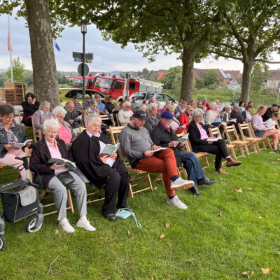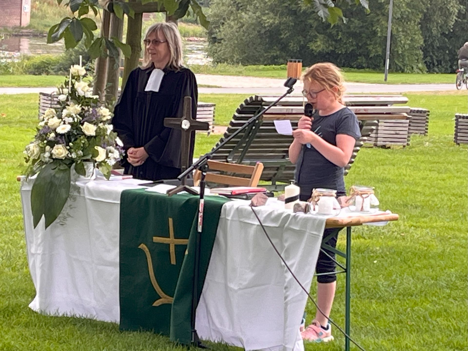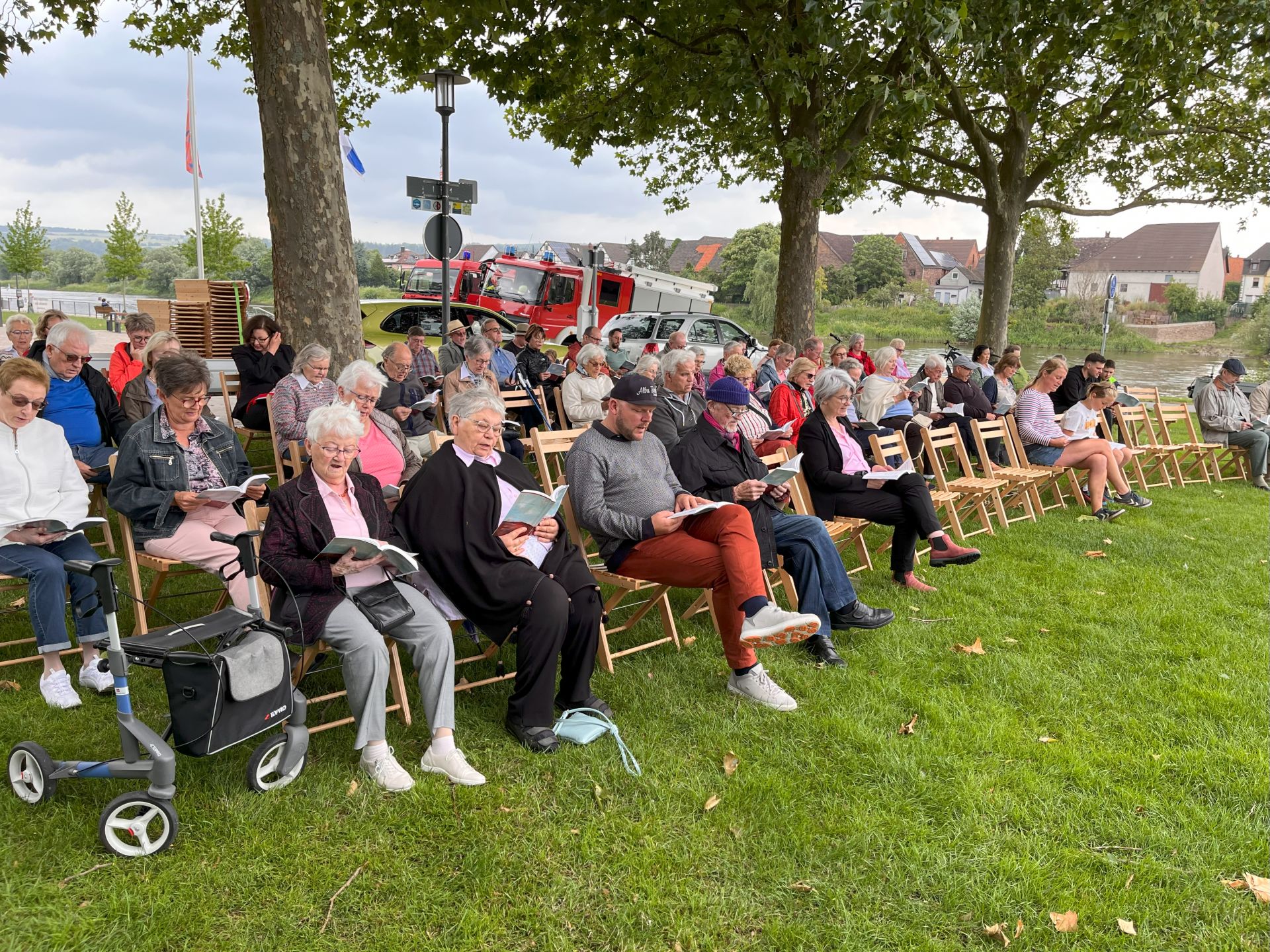 Gott liebt alle Menschen ohne Ausnahme. Er liebt die Guten und die Bösen, die Gerechten und die Ungerechten. Gott liebt die Frommen und die Sünder. Er liebt dich und mich. Gott zeigt seine Liebe durch seine Schöpfung. Er lässt seine Sonne aufgehen über alle Menschen. Er lässt seinen Regen fallen über alle Menschen. Er gibt allen Menschen das Leben und alles, was sie brauchen. Und Gott möchte, dass wir ihm ähnlich werden. Dass wir seine Liebe widerspiegeln in unserer Welt. Dass wir seine Liebe weitergeben an unsere Mitmenschen. Der Gesang der Gläubigen wurde von den Instrumenten Keyboard und Saxophone begleitet. Im Anschluss der Feier waren alle Gottesdienstbesucher herzlich eingeladen, um bei einer Tasse Kaffee oder Kaltgetränk miteinander ins Gespräch zu kommen. Danke an alle Helferinnen und Helfer, die dazu beigetragen haben, diesen schönen Gottesdienst an der Weser zu ermöglichen.