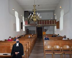 In beiden Kirchen werden bis auf weiteres bis 22 Besucher gelassen. Zudem muss ein Mundschutz getragen werden. Trotz der Auflagen ist es wieder ein gutes Gefühl, in der Gemeinschaft Gottes Wort zu hören und zu beten.
