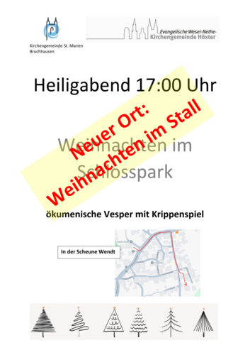An Heiligabend findet in Bruchhausen um 17:00 Uhr in Wendts Scheune, Winkelgasse 1 eine ökumenische Christvesper mit Krippenspiel statt.